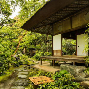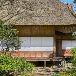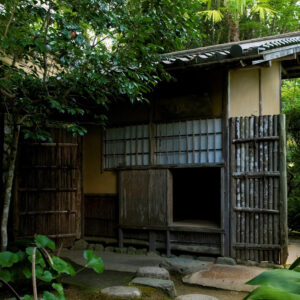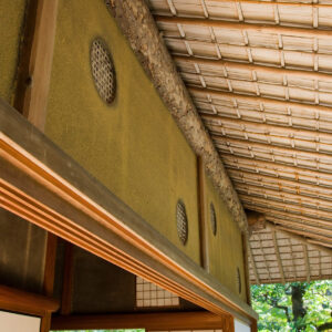 千家十職(じっしょく)とは、茶道に関わりの深い十の職業を家業とし、三千家に納めている職家(しょっか)のことです。臥龍山荘の建築に携わったとされるのは、金物師(かなものし)である九代・中川浄益、指物師(さしものし)である十三代・駒澤利斎、表具師(ひょうぐし)である奥村吉兵衛(きちべえ)、塗り師である九代・中村宗哲であると言われています。