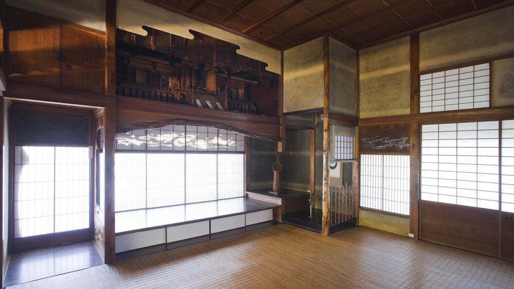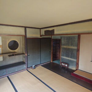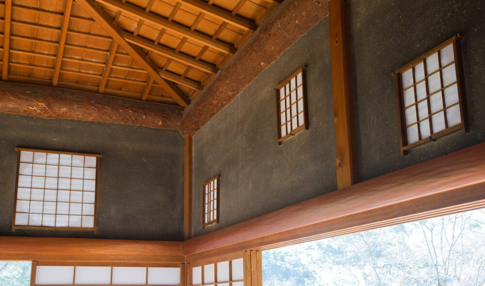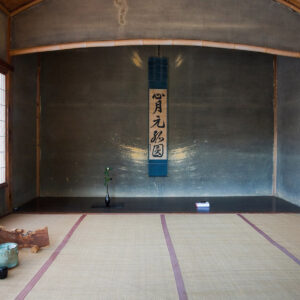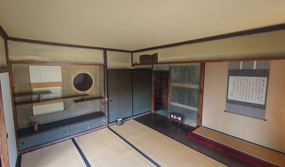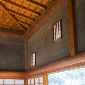 霞月(かげつ)の間は、「荒れた農家の夕暮れ」を表現した部屋です。部屋の壁の一部をあえて塗り残し、壁が落ちた農家を表現することで、わび・さびを感じさせます。