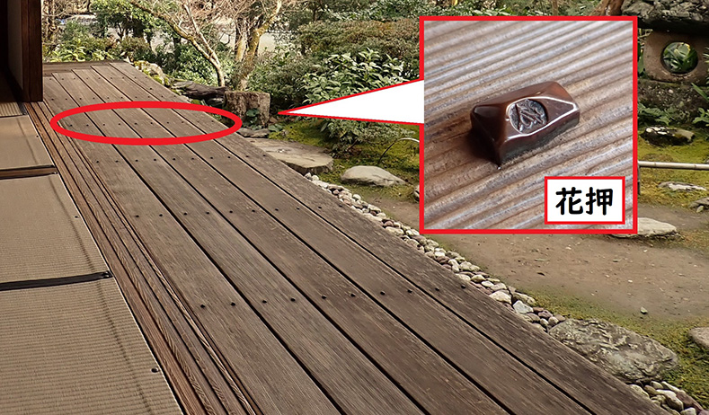 濡れ縁のアクセントにもなっている飾り釘の中には、千家十職の金物師・九代中川浄益(じょうえき)の銘として花押が刻まれたものが何本かあります。